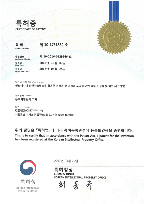 인도네시아 천연아스팔트를 활용한 저비용 및 고성능 도막식 교면 방수 조성물 및 이의 제조 방법
